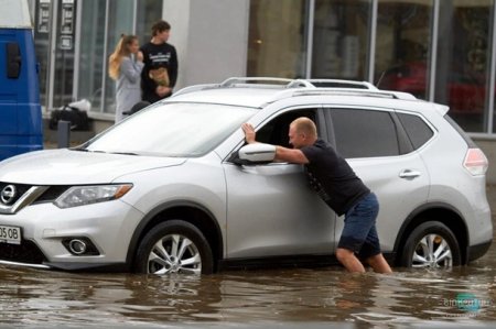 В Киеве водолазы обследовали причалы. В Днепре ливень затопил улицы и авто.