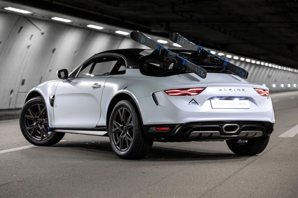 SportsX посвящена классическим раллийным A110, о чём напоминают крестики на фарах, но о стилистике ретро говорить не приходится – выглядит SportsX вполне современно. В основу этой модификации легло базовое исполнение купе A110 Pure с 252-сильной 1,8-литровой «турбочетвёркой» и 7-ступенчатым «автоматом» Getrag с двумя сцеплениями, о дорожный просвет увеличен на 60 мм, а ширина кузова – на 80 мм. Вдобавок SportsX снабдили оригинальными бамперами, серебристыми защитными пластинами под ними, защитным обвесом из чёрного пластика по нижнему периметру кузова и в колёсных арках, оригинальным креплением для лыж поверх заднего стекла и оригинальными колёсными дисками чёрного цвета.