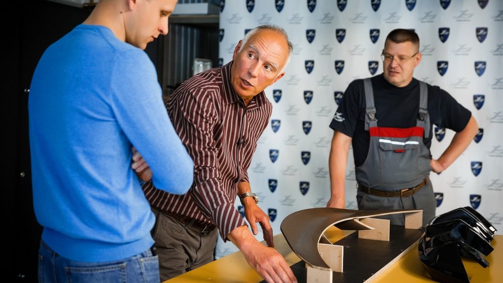 В.Я.: Изменений было гораздо больше. Изначально у автомобиля были сферические стёкла со «стограммовыми» форточками, был единственный стеклоочиститель конструктора Паши Бернадского, была идея увеличить базу автомобиля... И всегда находился какой-то ГОСТ, не позволяющий это сделать. Например, желали мы сделать ручки дверей, как на Порше, но это не позволяло поставить два автомобиля рядом на «сталинском» вагоне. Такие технические требования заставили нас сделать несколько шагов назад. Самые серьёзные изменения производились на Porsche, я курировал этот вопрос и находился там целый год. В угоду аэродинамике приподнялись линии багажника и окна. Я считаю, что это был довольно-таки однобокий подход: «коэффициент лобового сопротивления должен быть не больше 0,3, и точка». Ведь существовали и другие проблемы – и шумность, и загрязнение боковины...