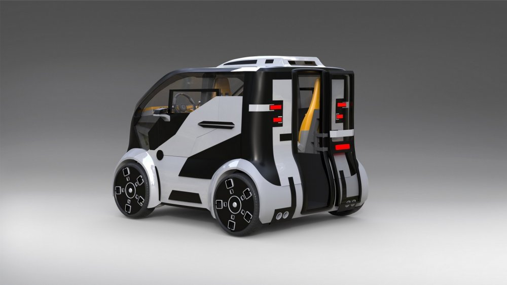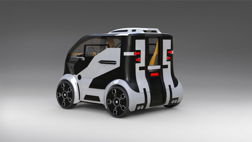 К: Концепты смотрятся здорово и совершенно по-новаторски с точки зрения пропорций сити-кара — кажется, никто не додумывался размещать шасси и салон на двух ярко выраженных уровнях. Но автомобиль получается довольно высоким. Если говорить об электрической или гибридной версии, низкий центр тяжести обеспечат аккумуляторы. А как с центром тяжести в классической версии с ДВС? Велись ли подобные расчёты?
