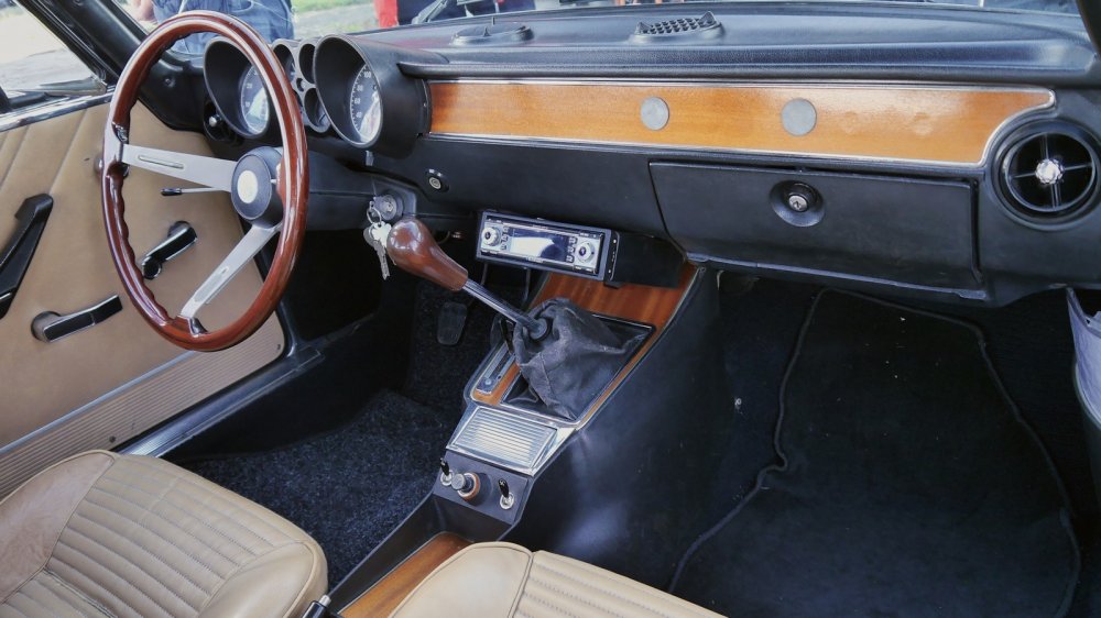 Множество мелких стильных штучек в интерьере напоминает, что мы сидим (и сейчас будем ехать!) в модной итальянской машине: кнопки сигнала на спицах руля (то, что обод деревянный, тут само собой разумеется), подрулевые переключатели, форма подголовников и их стойки... Особенно поразили последние: никогда не думал, что доведется увидеть несущие деревянные детали на автомобиле второй половины ХХ века!