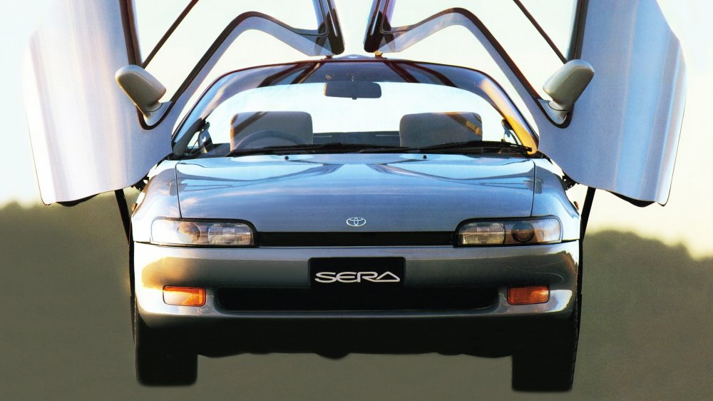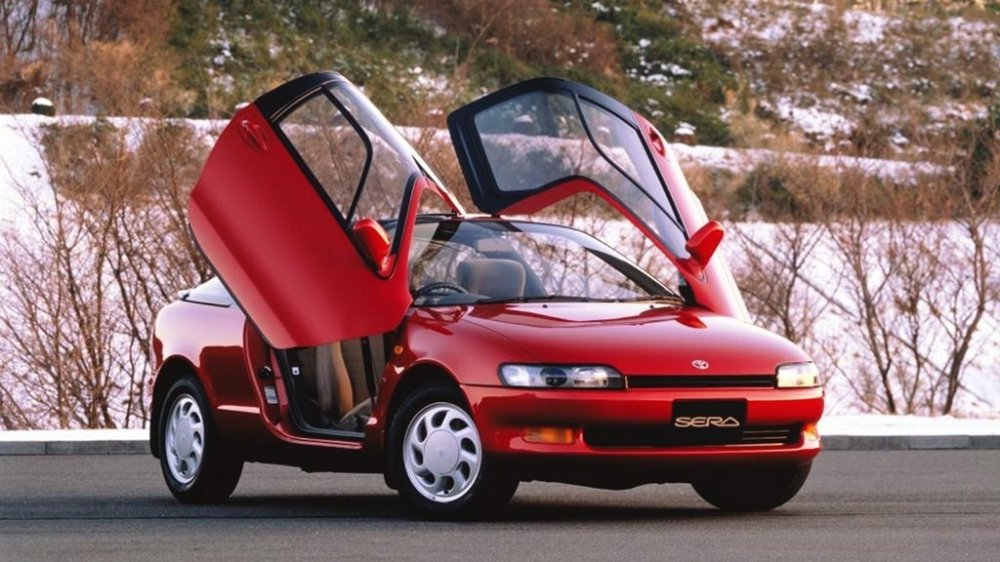 Toyota Sera и вправду стала весьма смелым проектом – не только из-за дверей, а, так сказать, по сумме факторов. На ней обкатали технологию «гибкой прессовой системы» для изготовления кузовных панелей сложной формы, на ней появилась линзованная головная оптика, она обладала хитрым остеклением причудливой формы, одним из элементов которого была… крышка багажника, целиком выполненная из стекла. В общем, необычного тут хватает!