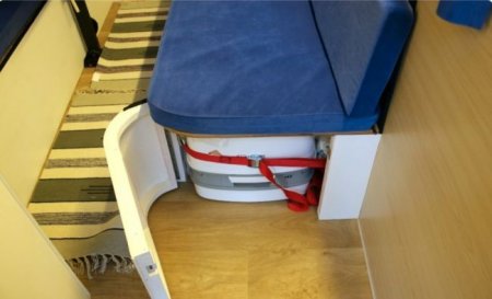 Отдельный отсек отдан под туалетную комнату с душем. Что касаемо