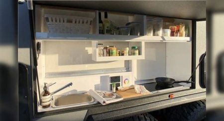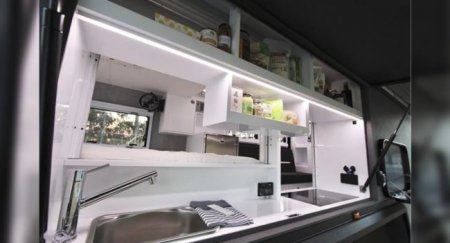 поднимающаяся вверх крыша и откидной задний борт. Жилой модуль