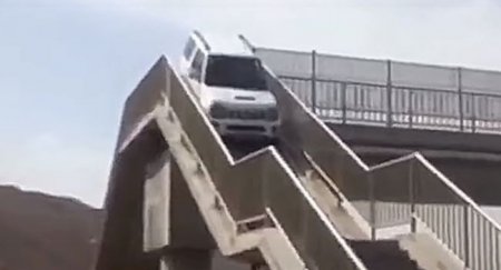 Jimny проехал по лестнице, которая предназначалась для пешеходов.