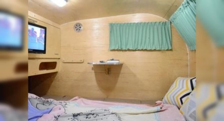 трейлера диван, который превращается ночью в двуспальную кровать.