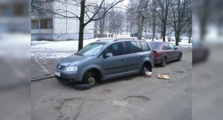 откажутся от своего желания, продолжать манипуляции с машиной и пытаться украсть колеса, даже в том
