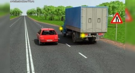 когда впереди есть знак «Сужение дороги», они доезжают до самого
