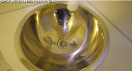 встроенный бак от биотуалета, там же в прямом доступе бак с чистой
