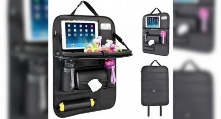 также органайзер на кресло со столиком, мусорное ведро, которое