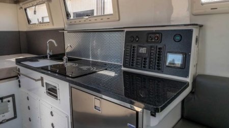 Кемпер оборудован кухней со встроенной плитой и выдвижным