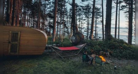 разместился в лесу очень необычный кемпинг, состоящий из нескольких