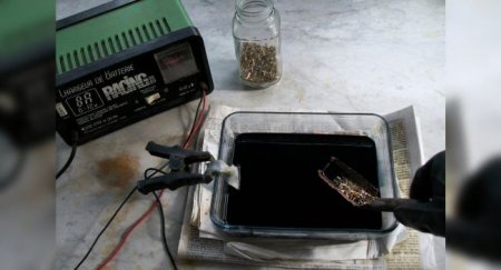 Возле детали разместить анод из свинца с «+». - Выдерживать деталь в электролите необходимо не менее 30 минут.