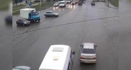 автомобиль сталкивается с другим, старающимся успеть проскочить на