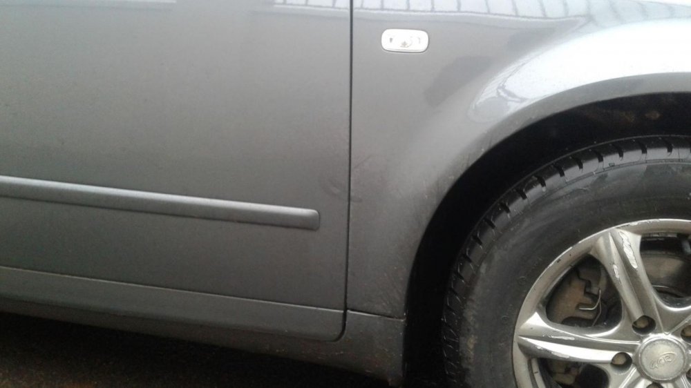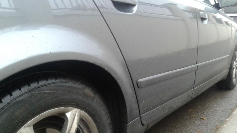 Странное совпадение, но и у этой А4 обе правые двери в шпатлёвке. Слой очень толстый, но сделано всё ровнее, чем у предыдущей машины – на глаз я этого сразу не заметил. Странно, что при таком количестве шпатлёвки центральные стойки кузова и порог оказались целыми.