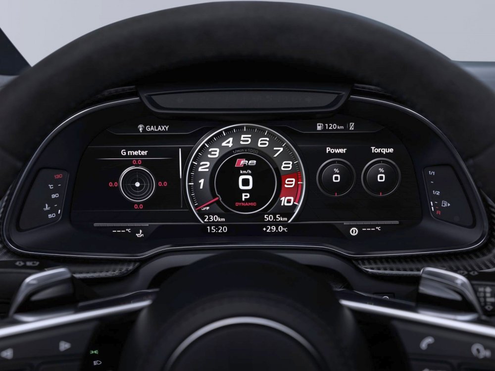 Нынешнее обновление приурочено к вступлению в Европе экологических норм Euro 6d-Temp, в связи с чем 5,2-литровые «атмосферники» V10 обзавелись сажевыми фильтрами. Давно подмечено, что после установки новейших «очистных сооружений» у двигателей вырастает расход топлива, но для спорткаров это не так важно – главное, что не ухудшилась динамика. Разработанный совместно с Lamborghini мотор имел запас по форсировке, чем и воспользовались при подготовке обновлённого R8: мощность базовой модификации увеличилась с 540 до 570 л.с., крутящий момент подрос с 540 до 550 Нм, разгон до «сотни» у купе теперь занимает 3,4 с, у открытой версии Spyder – 3,5 с (в обоих случая на 0,1 с меньше, чем раньше), максимальная скорость выросла на 4 км/ч – до 324 км/ч у купе, и 322 км/ч у кабриолета.
