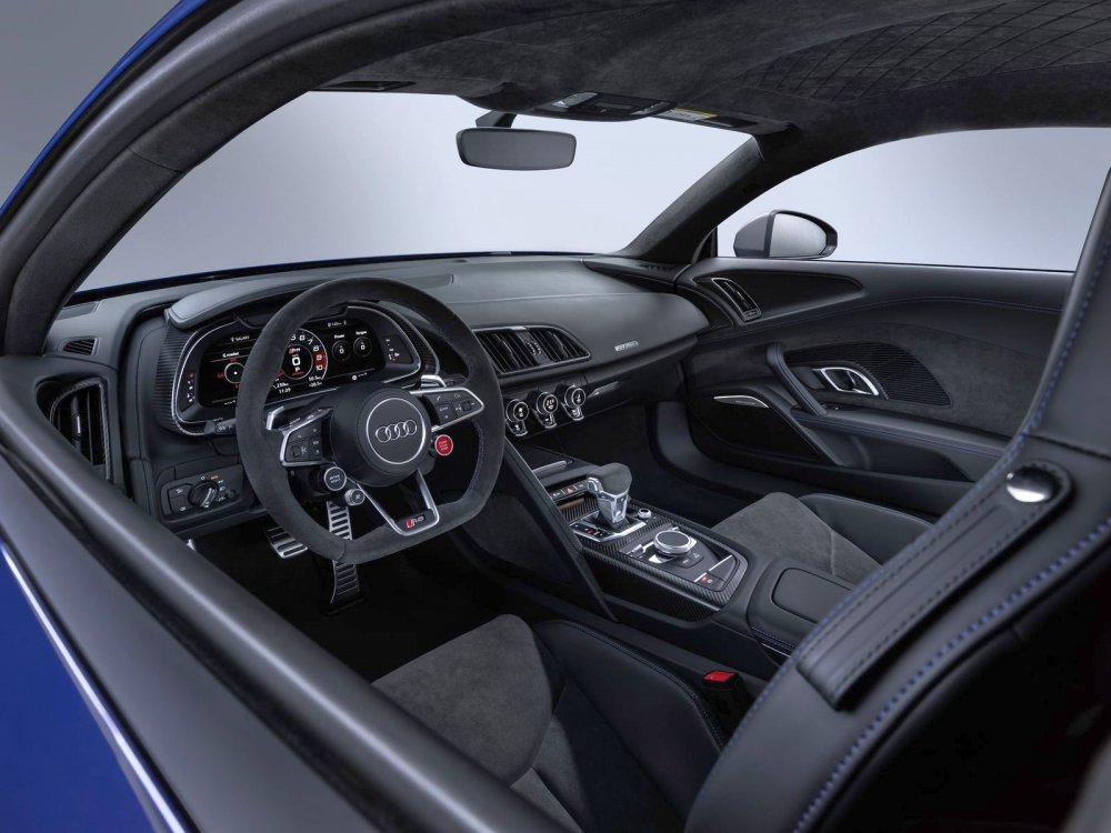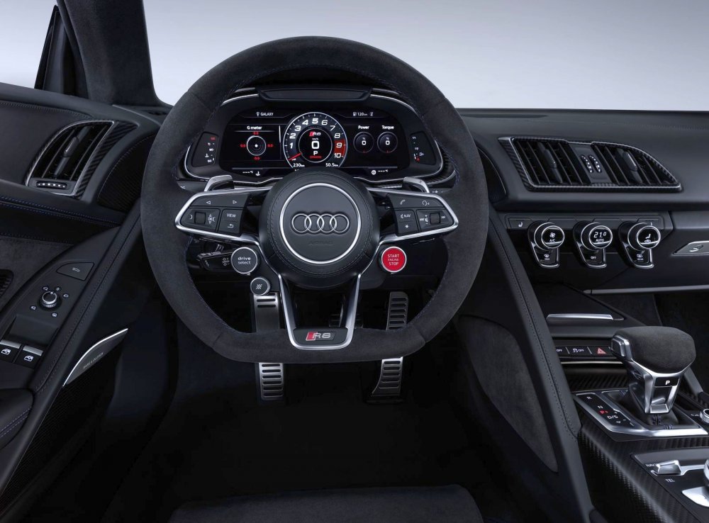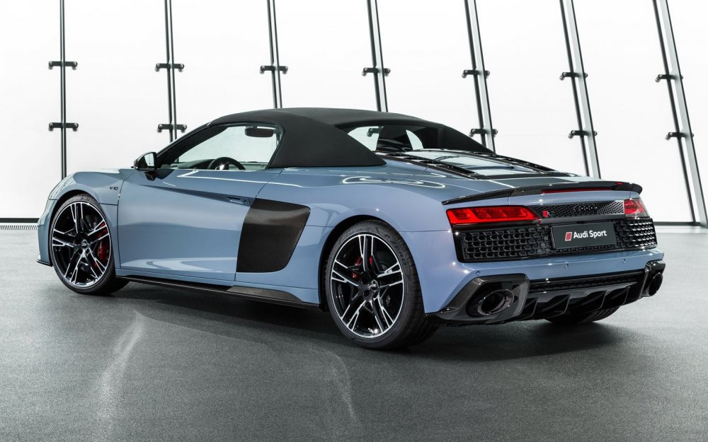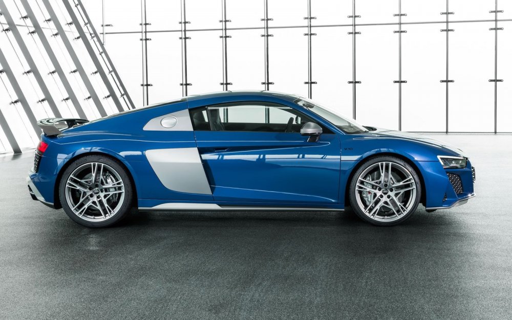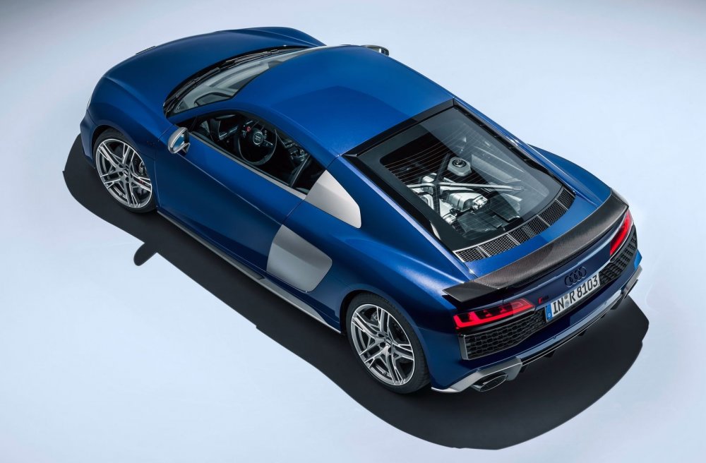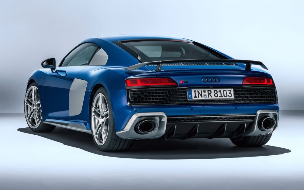 Топ-версия R8 теперь называется performance quattro, а не plus, её мощность увеличилась с 610 до 620 л.с., крутящий момент с 560 до 580 л.с., время разгона до 100 км/ч сократилось на 0,1 с и теперь составляет 3,1 с у купе и 3,2 с у кабриолета, максимальная скорость – 331 и 329 км/ч соответственно (+1 км/ч к прежним показателям).