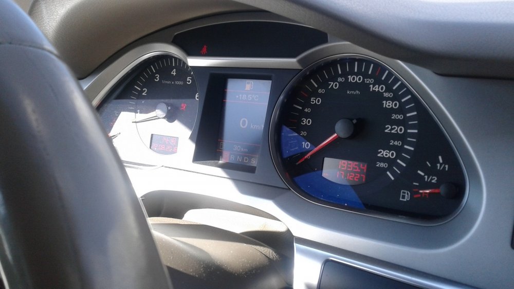 Настораживает горящая лампочка подушки безопасности. Но найти следов её срабатывания не получилось, так что, вероятно, просто это какой-то “глюк” салонной электрики Ауди. Таких “глюков” у неё может быть много. Тут, например, ещё и плохо работает экранчик климатической системы.