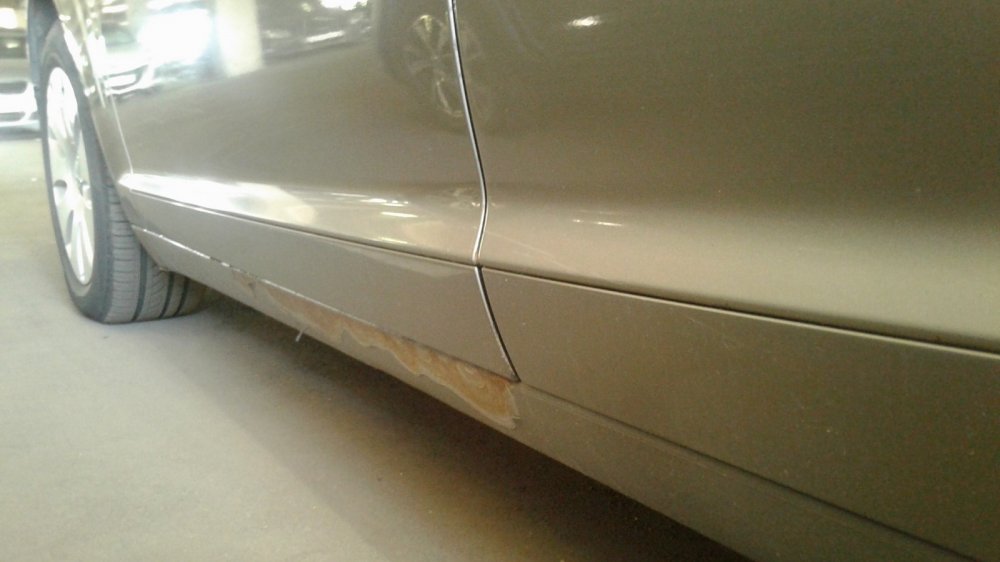 Дилер будто специально поставил машину так, чтобы смотреть её было как можно труднее. Но и в таком положении она выглядела как печень моего соседа-алкоголика. Даже без всяких приборов понятно, что здесь придётся перекрашивать.