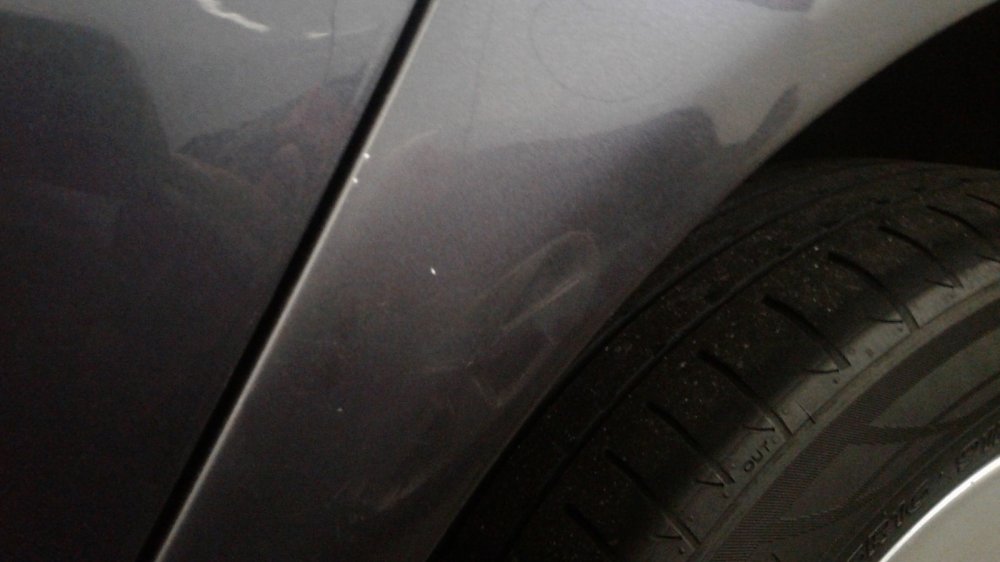 Расстраивают два факта: шпатлёвка на заднем левом крыле и необходимость покупать машине новую “обувку”.