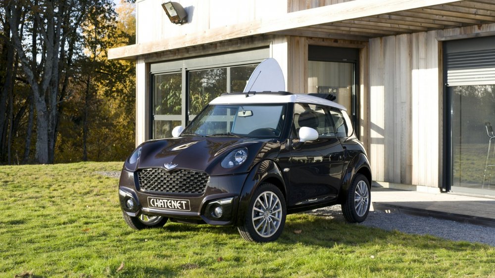 Относительно молодая компания Chatenet выпускает, напротив, одну из самых дорогих моделей в классе, и этому есть оправдания. Ведь даже в начальной версии CH26 она крупнее прочих «бесправников»: при колесной базе более двух метров и длине более трех по габаритам — это практически Mini первого поколения. Параллель напрашивается сама собой, поскольку и в дизайне явно прослеживается влияние Mini, но уже современного, а по количеству вариантов кузова Chatenet впереди: обычный хэтчбек, машина со складной матерчатой крышей, купе, псевдокроссовер, удлиненный универсал и даже пикап.