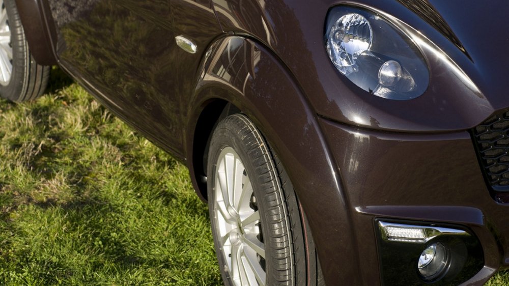 Во всяком случае, техническая суть осталась прежней, одинаковой для всех подобных машин: пластиковый кузов «натянут» на металлический каркас, передняя подвеска — McPherson, задняя — простейшая независимая на косых рычагах, передние колеса вращает крохотный дизель в блоке с вариатором. Отдача мотора ограничена законодательно, как и «максималка» в 45 км/ч, так что говорить о времени разгона до «сотни» не приходится, и на этом фоне особенно трогательно выглядят дисковые тормоза на всех колесах «взрослой» 15-дюймовой размерности.