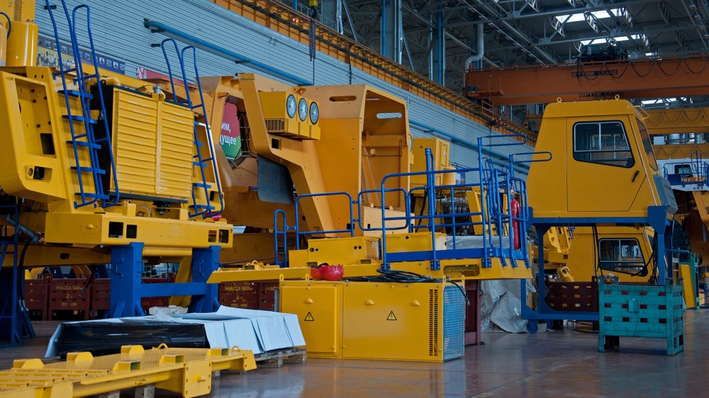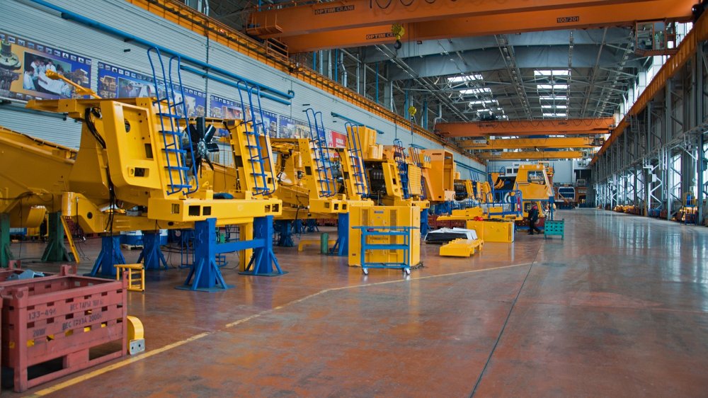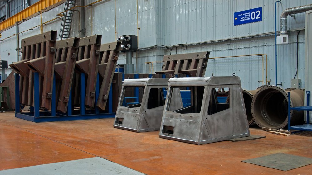 Территория предприятия большая, по ней ходят автобусы – идти пешком здесь слишком долго. И хотя численность персонала не запредельно велика (около восьми тысяч человек), но площадь завод имеет большую: как-никак, карьерные самосвалы производят, а не педальные машинки. За один день побывать везде нельзя, поэтому выберем только самое интересное – Производство сверхтяжёлых машин. К последним относятся карьерные самосвалы грузоподъёмностью 420–450 тонн, 320–360 тонн, эвакуаторы на базе карьерных самосвалов (130 и 220 тонн), тяжеловозы грузоподъёмностью 150 тонн и шлаковозы (60–80 тонн).