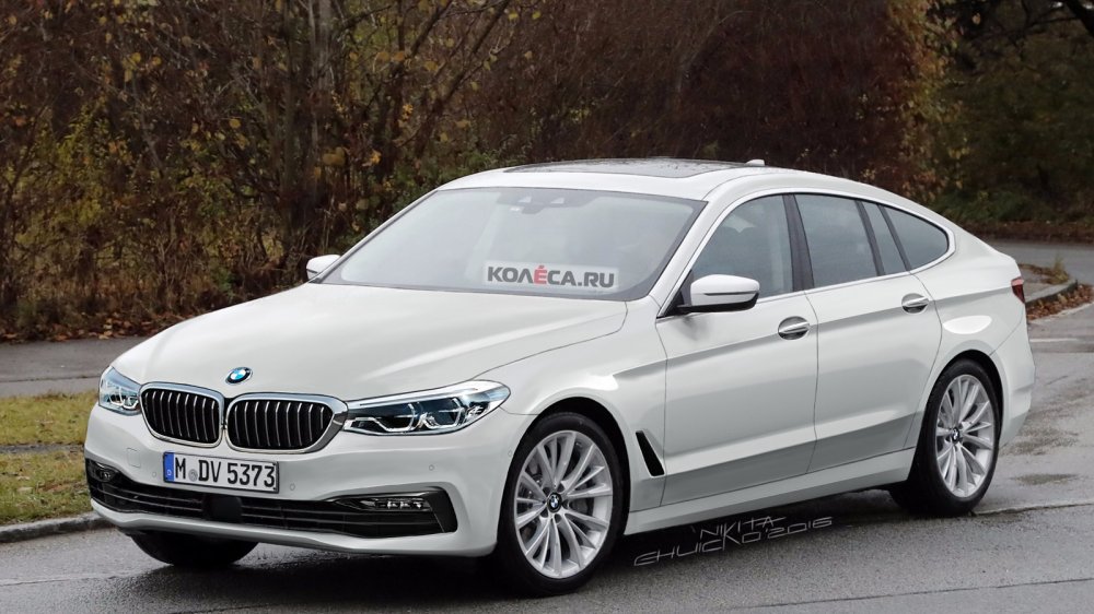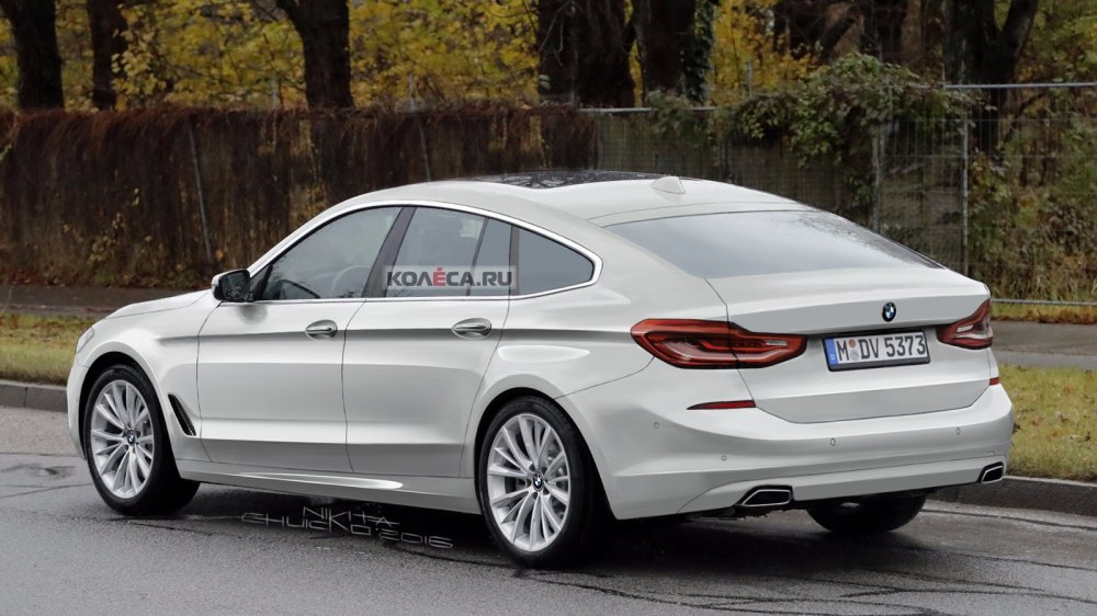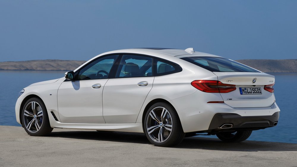Вторая баварская новинка – большой лифтбек, получивший название 6 Series GT. Он был представлен ещё летом, а его внешний вид мы предсказали ещё в ноябре прошлого года. Нам это удалось почти полностью, за исключением расположения воздуховодов в передних крыльях. Отличия в бамперах на представленных изображениях объясняются разными версиями – серийный автомобиль здесь оснащён М-пакетом.