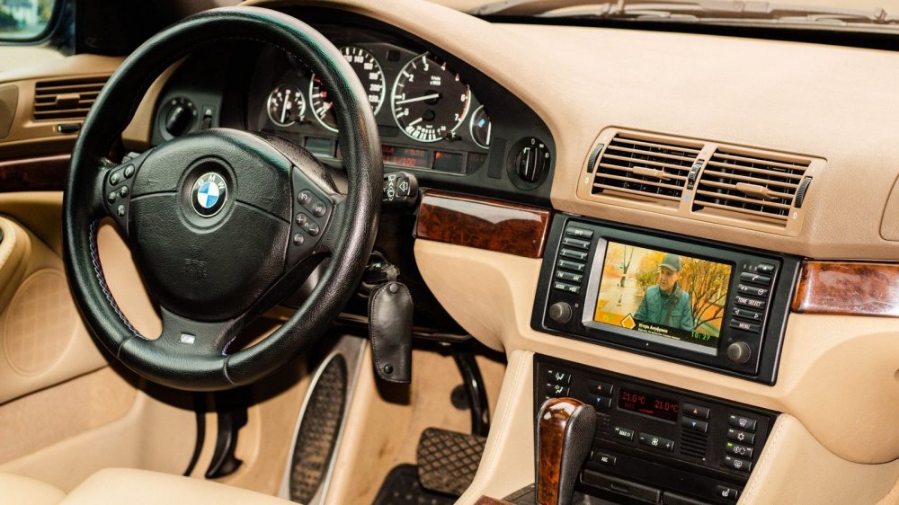 Мультимедиа вызывает смешанные чувства. CD-чейнджер на 6 дисков можно было бы порекомендовать меломанам, ищущим чистого звучания несжатых звуковых файлов, но посредственное качество родной акустики на Е39 весь кайф сводит на нет. Телефон… всё ещё работает! Ведь здесь используются обычные сим-карты стандарта GSM. Над навигацией можно было бы посмеяться, но если честно, то на многих современных машинах (не будем показывать пальцем) качество графики ушло не сильно далеко от этой БМВ из 2000-го.