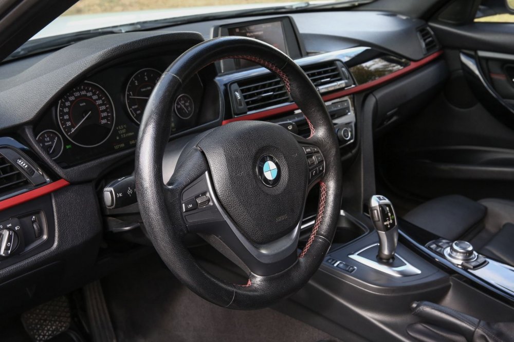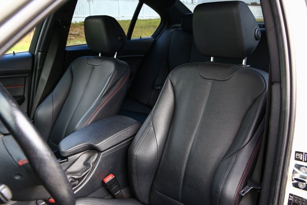 Интерьер у F30 в среднем куда качественнее, чем у Е90 при прочих равных. На первый взгляд даже салоны машин с пробегами за 200 тысяч километров смотрятся очень хорошо: износ руля при пробегах 100-150 тысяч можно увидеть, только сравнив с таким же новым износ фактуры и блеск. Сиденья сверху и рычаг АКП обычно также после минимальной обработки следов износа не имеют. Выдают возраст царапины пластиковых элементов внутренней ручки водительской двери, износ кнопок стеклоподъемников, а иногда и блока подрулевых выключателей, трещины кожи на боковой поверхности сиденья, иногда износ накладок порогов и износ пластика центральной консоли в зоне контакта с коленом водителя.