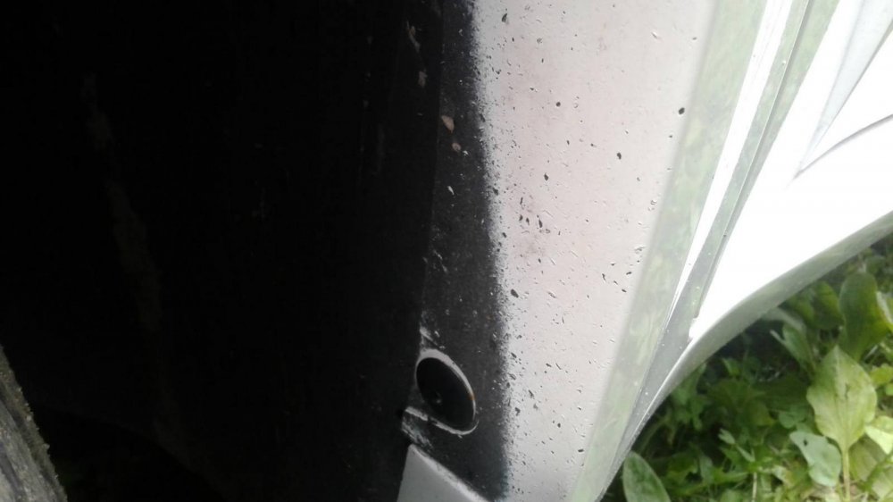 Машину нам обещали в полностью заводском ЛКП. Обманули. Передние крылья у неё пластиковые, так что толщиномером тыкать бесполезно, но кое-что подкрасить тут пытались.