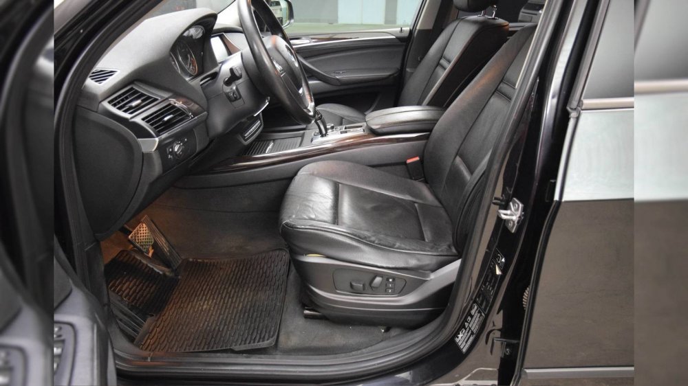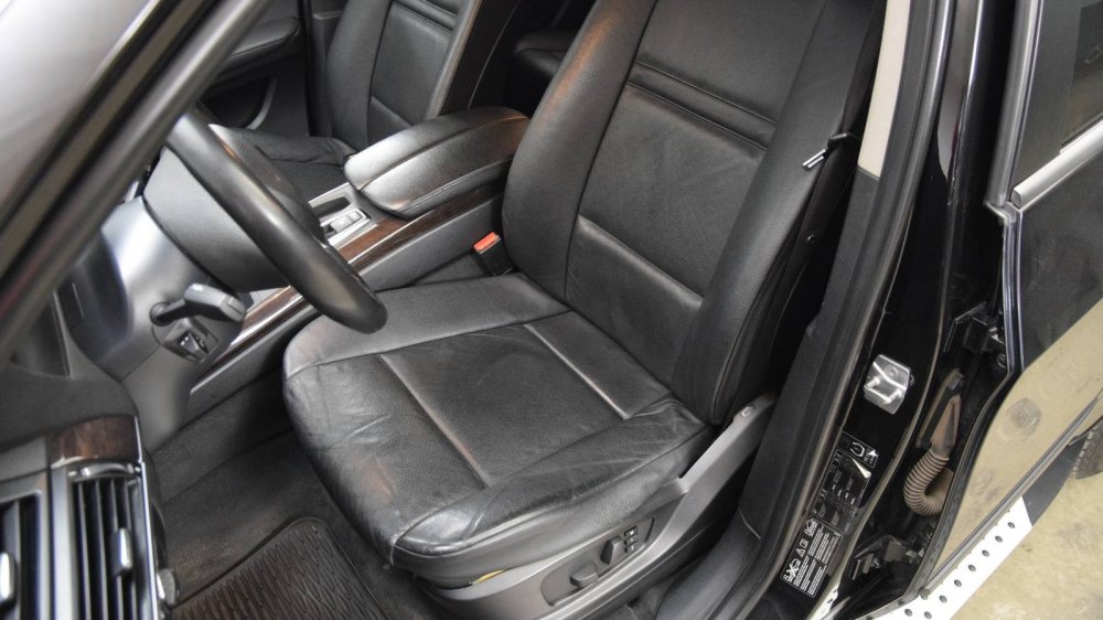 Теперь посмотрим салон. Он у Е70 от природы качественный. Хорошие материалы, сборка… Электрика, бывает, глючит, но выглядит салон обычно хорошо даже при пробеге в 200 тысяч. И наш BMW это подтверждает. Боковина сиденья немного изношена, но это не страшно.