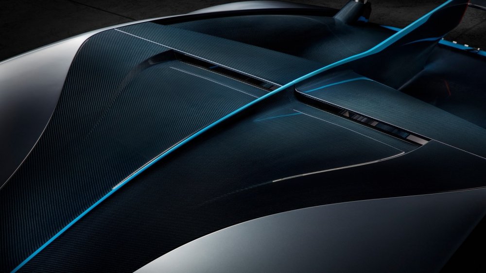 Крыша тоже выполняет роль воздухозаборника, направляя поток в перепроектированный особым образом моторный отсек, играя ключевую роль в температурном менеджменте этой области. Задний спойлер у Divo на 23% шире, чем у Chiron – 1,83 метра, генерируя больше прижимной силы и обеспечивая улучшенное воздушное торможение.