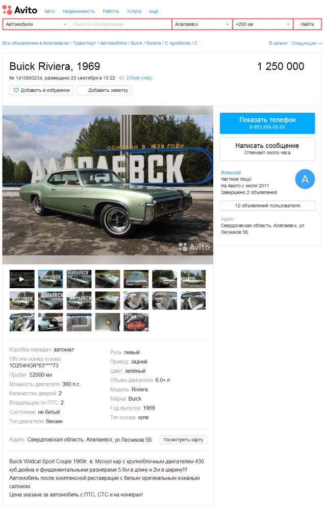 Ну а еще один несомненный плюс такой машины – это даже не то, что она подарит вам поистине фантастические впечатления и незабываемый опыт. А то, что она, в отличие от любого современного автомобиля, даже редкого и шикарного, вроде Bentley Continental, будет не дешеветь, а только прибавлять в цене. При условии должного к себе отношения, разумеется. Так что если ваш миллион с четвертью не последний и не кредитный, в глазах еще горит огонь, а в груди еще осталось достаточно духа авантюризма и любви ко всему прекрасному, но неизведанному, смело начинайте поиски. Ну или просто возьмите билет до Алапаевска – этот Buick Wildcat выглядит подозрительно идеальным за столь скромные деньги.