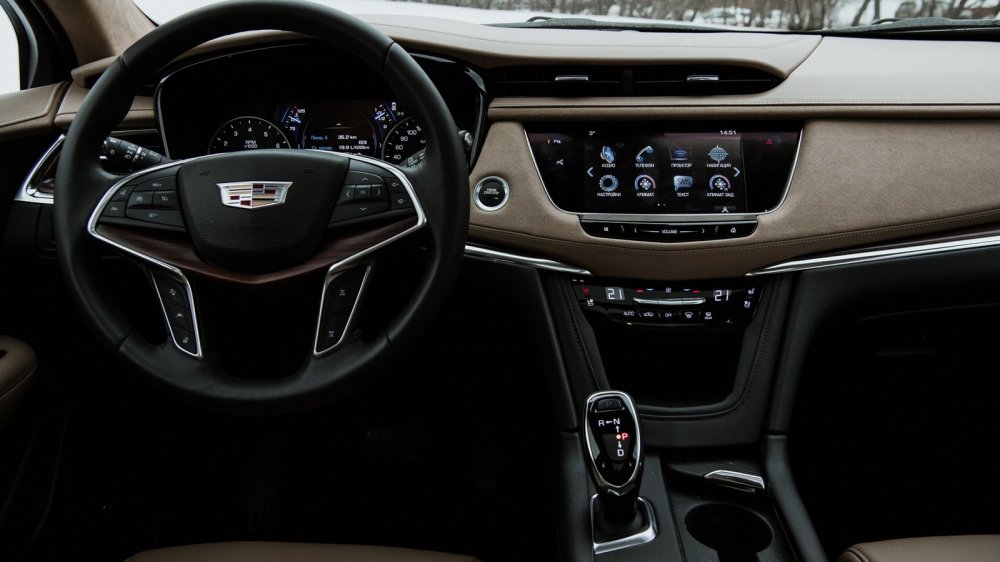 Как и в Штатах, у нас Cadillac XT5 предлагается с одним-единственным мотором – 3,6-литровым V6 мощностью 314 л.с. Но если в Америке можно заказать кроссовер с приводом на переднюю ось, то в России XT5 безальтернативно полноприводный. По сути, выбор сводится только к комплектации – Luxury, Premium и Platinum. Тестовый автомобиль ожидаемо был "платиновым", хотя едва ли это именно та комплектация, за которую стоит доплачивать восемьсот тысяч рублей. В-первых, к черту колеса с дисками диаметром 20 дюймов. Cadillac – даже если это кроссовер – должен быть комфортным, а на весенних дорогах с низкопрофильными шинами это у него получается с трудом. Во-вторых, XT5 под завязку напичкан системами активной безопасности и помощи водителю.