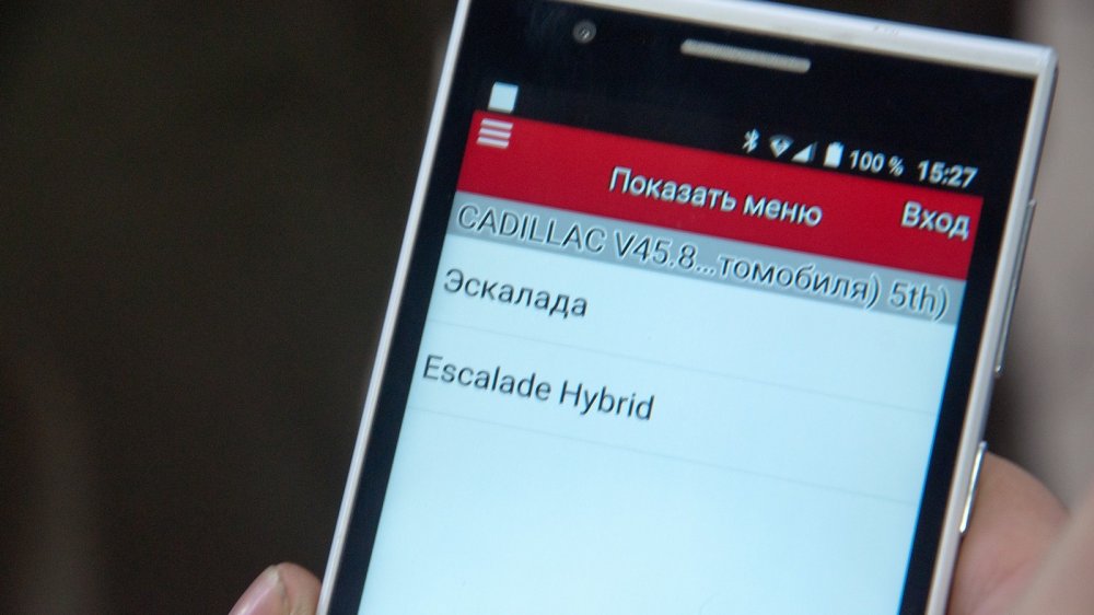 Приборчик требует подключения к устройству с OS Android или iOS – мы его использовали с обычным смартфоном. Подключаем адаптер к колодке OBD-ll, выбираем в меню нужный автомобиль. И сразу же выясняем, что у прибора есть проблемы с «русской языкой»: в русской версии Cadillac Escalade может быть либо «Эскалада», либо Escalade Hybrid, третьего не дано. Как прокомментировал этот небольшой казус специалист компании «Лаборатория Скорости», лучше знать английский, чем доверять русификации китайских приборов (это относится не только к Launch).
