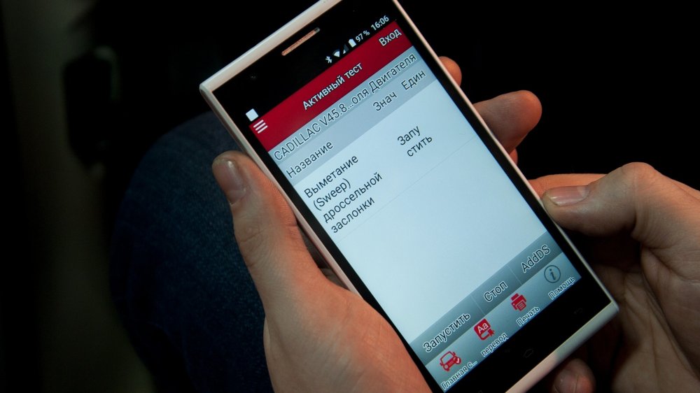 Есть у этого прибора такой пункт меню: активный тест. Под этим подразумевается тест исполнительных механизмов. Зашли во вкладку и сделали нечто страшное в русском написании: «выметание» дроссельной заслонки. Это означает – адаптация дросселя после его чистки. В общем-то, кое-что этот прибор умеет. Давайте разберём вместе со специалистом его плюсы и минусы.