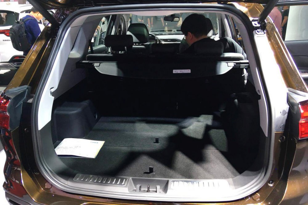 На втором ряду — просторно, светло благодаря панорамной крыше и… просто. Посадка комфортная, запас для ног достаточный, а регулировать его можно, сдвигая сиденья второго ряда в пределах 260-миллиметрового диапазона. Оценить третий ряд не удалось: на стенде была выставлена пятиместная версия автомобиля с двумя крупными лючками «подполья» в багажнике.
