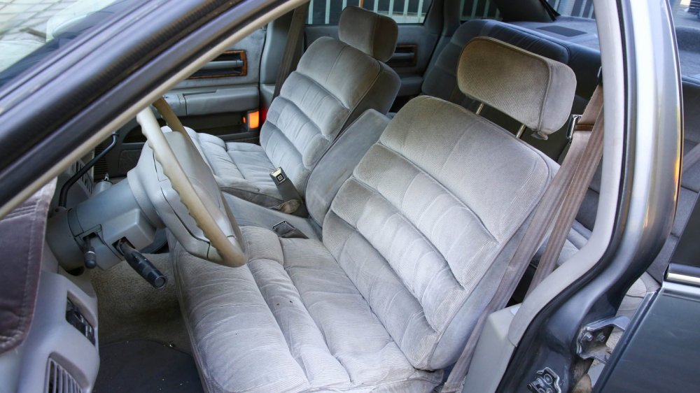 Но главное – это, разумеется, непревзойденный простор спереди и сзади! Одно из выразительных его проявлений — сплошной передний диван, памятный многим, кто не знаком со штатовским автопромом непосредственно, но хорошо знает нашу 21-ую Волгу. Сиденье дивана «Каприса» цельное, а спинка промежутка между двумя креслами может то объединять их в единый диван, то разделять, становясь здоровенным подлокотником. Электрические регулировки позволяют менять положение передних сидений раздельно – это как раз один из признаков версии «Brougham». В комплектациях-«пустышках» диван регулировался целиком – то есть, если водитель захотел откинуть спинку и вздремнуть, то и пассажиру справа приходилось полежать…