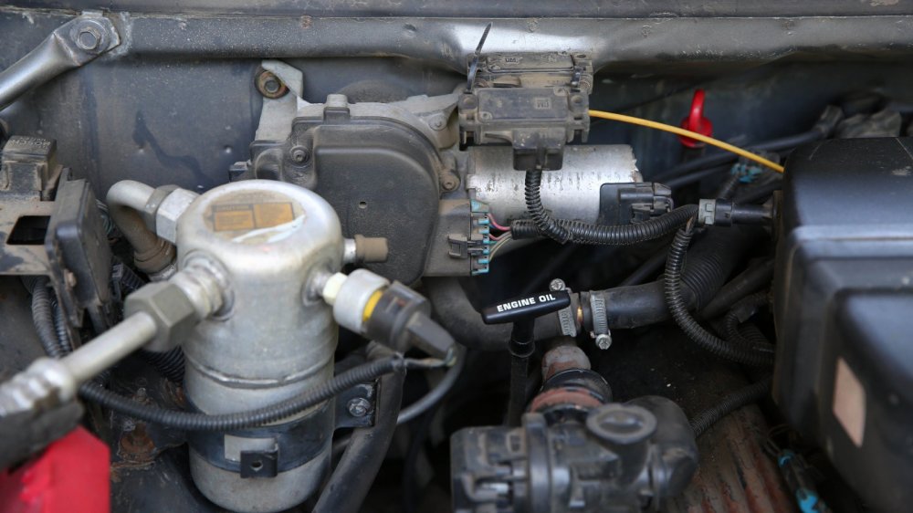 По технической части в «Каприсе» все достаточно незамысловато. Система охлаждения – «открытого» типа, как на старых УАЗах, Волгах и опять же Москвичах – она работает без давления, и ее расширительный бачок постоянно сообщается с атмосферой напрямую, без клапанов. Вентилятор радиатора крутится через вискомуфту, без всякой электроники. Бачок тормозного цилиндра закрывается как консервная банка – примитивной штампованной жестяной крышкой, без датчика уровня.