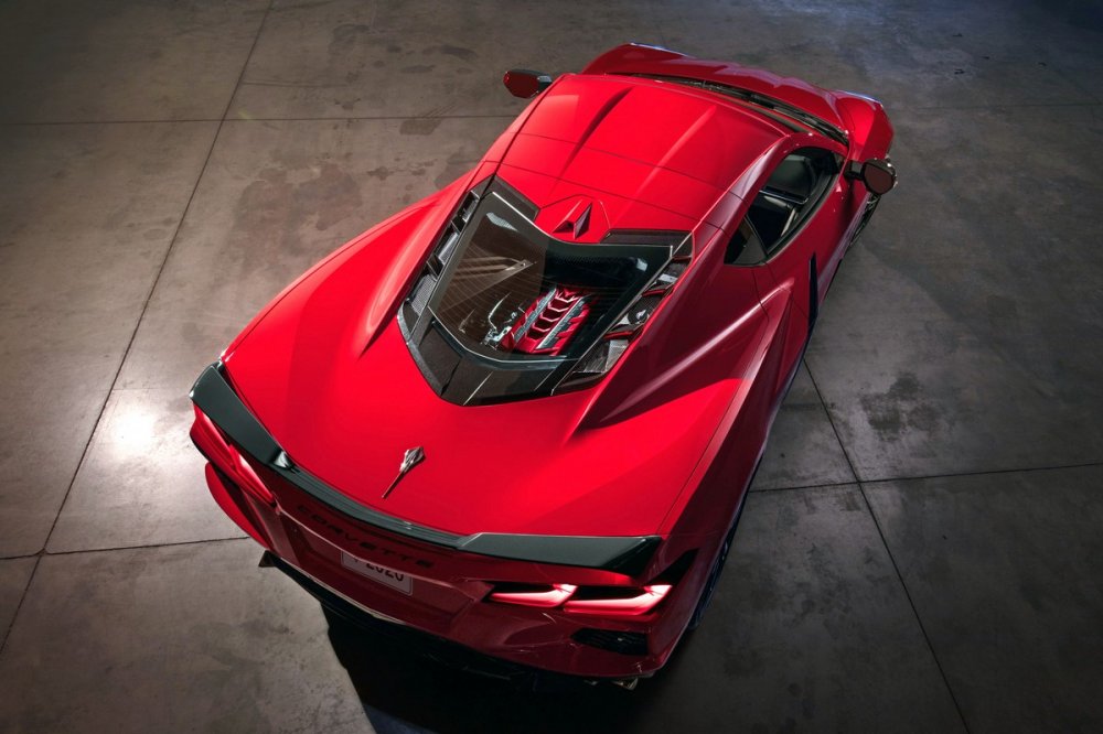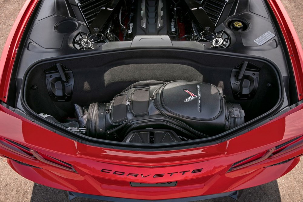 Несущая основа кузова изготовлена в основном из алюминиевых сплавов, но поперечная балка в районе заднего бампера углепластиковая, а многие наружные кузовные панели – из стеклопластика. Багажника два, в переднем и заднем свесах, совокупной вместимостью 356 л, причём форма заднего сконфигурирована таким образом, чтобы в него помещалась съёмная часть крыши – базовый Corvette Stingray по-прежнему имеет кузов типа тарга. Сухая масса автомобиля – 1530 кг. Для сравнения скажем, что у Ferrari F8 Tributo сухая масса составляет 1330 кг, а у McLaren GT – 1466 кг.