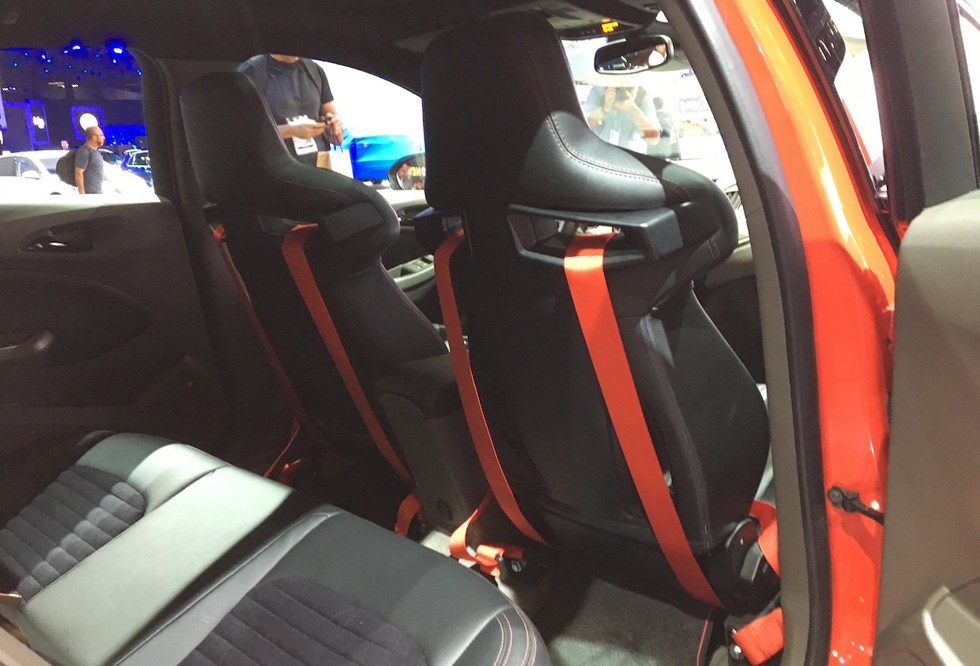 Так, у представленного на выставке автомобиля – прежнее оформление кормы и почти такое же исполнение передней части с минимальными отличиями в бампере. Помимо этого у новинки есть эмблемы в виде букв «SS», логотип бренда выполнен в чёрном цвете, плюс машина получила 20-дюймовые диски (у обычной версии – 17-18 дюймов). Также в арсенале Chevrolet Cruze Sport6 SS значатся перенастроенная подвеска, спортивные кресла и рулевое колесо, на педалях появились металлические накладки.