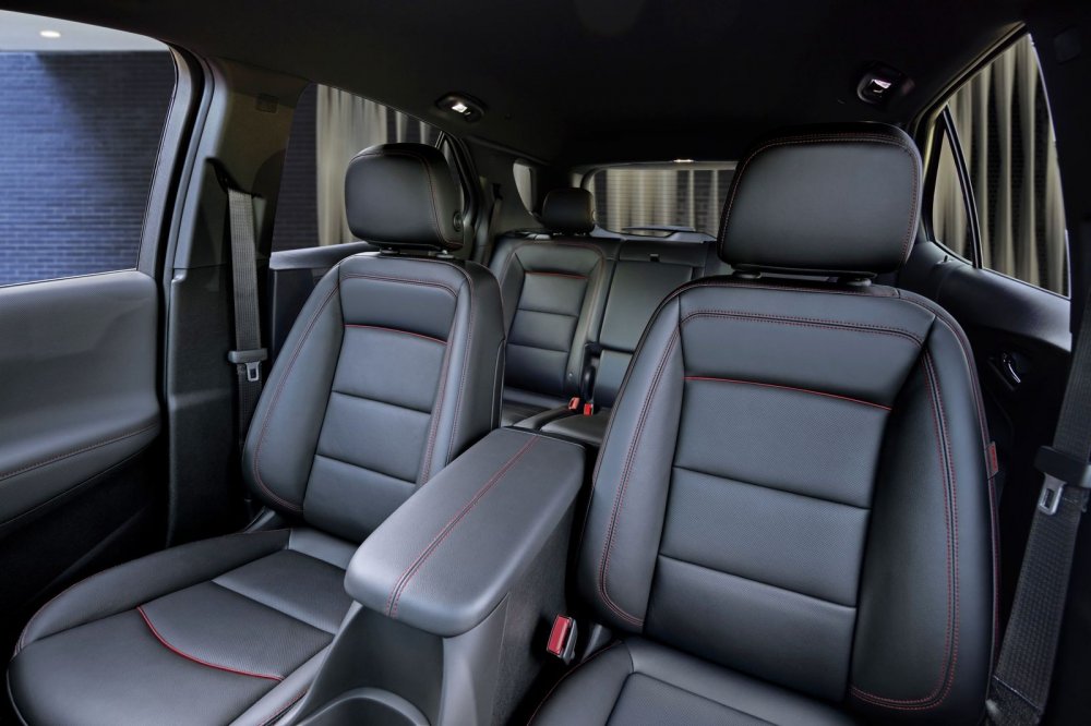 С обновлением у Equinox появилась условно спортивная линия отделки RS. К динамическим качествам она не имеет никакого отношения – спортивность у дизайнеров Chevrolet ассоциируется с чёрными глянцевыми вставками в экстерьере (в салоне их, к счастью, нет), сдвоенным выхлопным патрубкам и чёрной кожаной обивкой кресел с красной прострочкой.