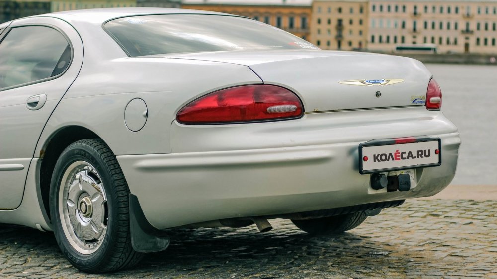 Агрессии при этом – ни грамма. Это вам не Dodge Intrepid с прищуром а-ля Viper или 300M, готовый бросаться на каждую «пятёрку» BMW. Взгляд каплевидных фар беззлобен, почти наивен, широкая пасть решетки радиатора открыта в добродушной улыбке. Concorde похож на большого добродушного тюленя, вылезшего погреть на солнышке свои мясистые упитанные бока. А увидев название на крышке багажника, сразу вспоминаешь «Машину времени», напевавшую «я старый самолет, я толстый самолет…».