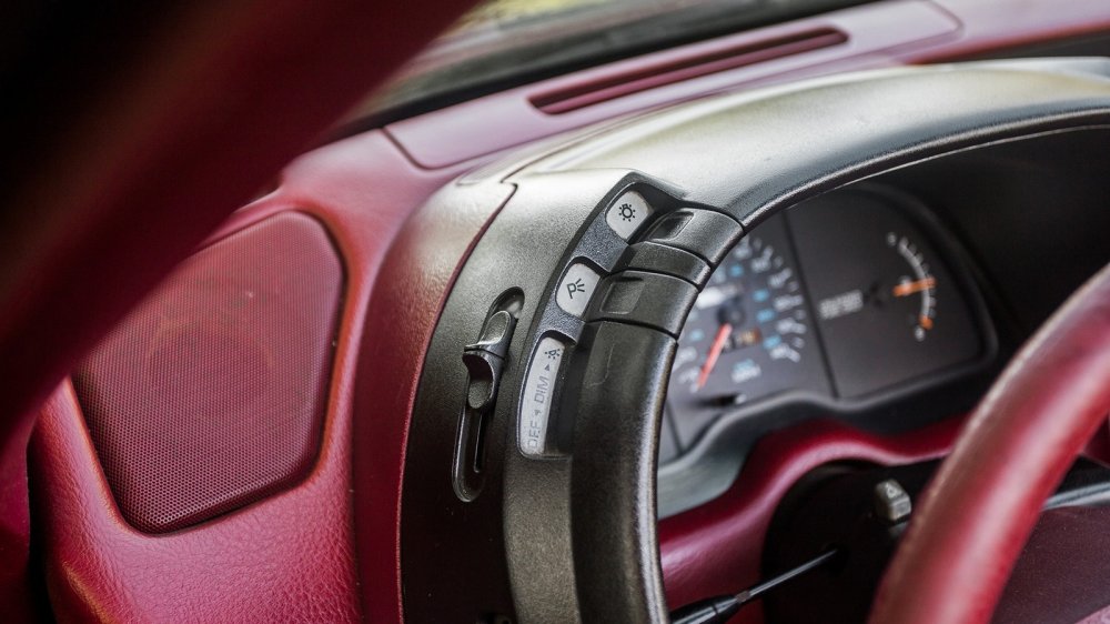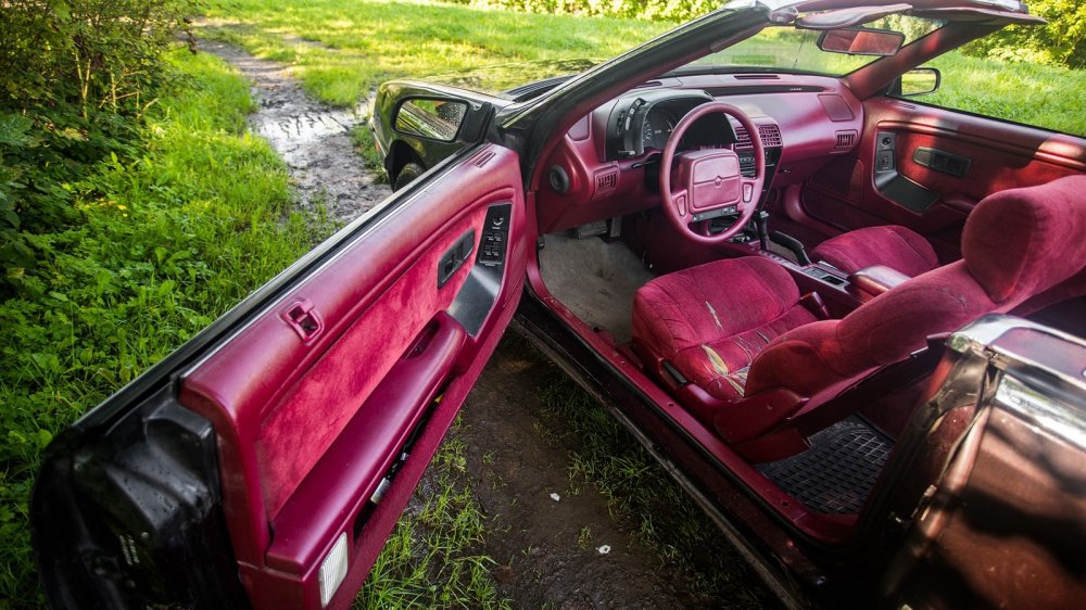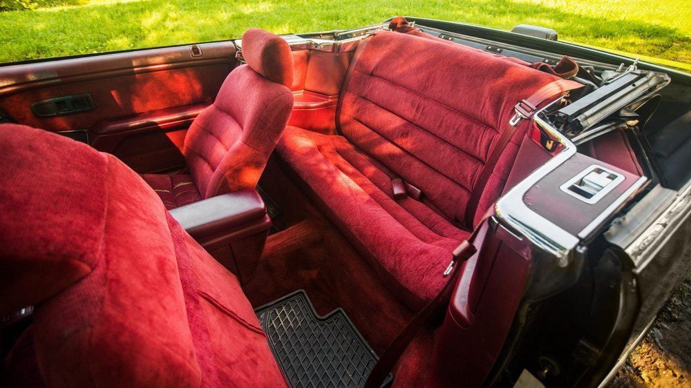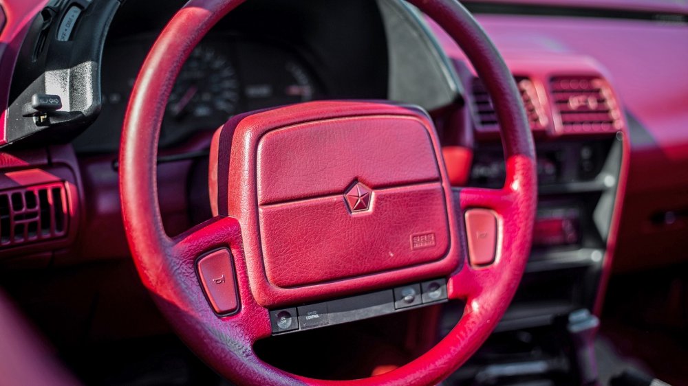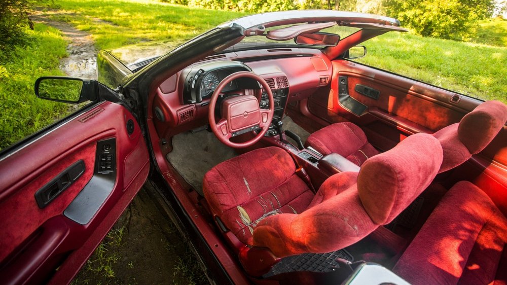 Салон в тон кузова – беспроигрышное решение по поднятию статуса модели. Дизайн интерьера простоват, но соответствует актуальным американским трендам своего времени. В конце концов даже премиальный одногодок в лице Cadillac Allante не мог похвастать изящным салоном. Яркий цвет отлично скрадывает прямоугольную простоту интерьера и жёсткость пластика. Немногочисленная общекорпоративная фурнитура осталась чёрной и вызывает недоумение в этом малиновом царстве, но впечатление не портит.