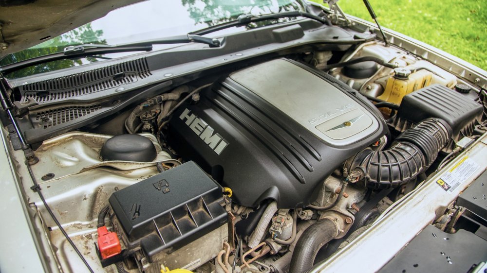 Цифры среднего расхода, легко достигающего 20 л/100 км и выше, слегка остужают пыл. Страшно представить, какое значение выдавал бы компьютер, не будь Крайслер снабжен системой Multi Displacement System (MDI) отключающей при малой нагрузке половину цилиндров. Для водителя переход с одного режима на другой совершенно незаметен. Только что ты тихо, по-черепашьи полз в пробке на четырех цилиндрах, как вдруг газ в пол – и за 40 миллисекунд жалкая «четверка» превратилась в могучий V8, разгоняющий пятиметрового кашалота до 100 км/ч в пределах шести секунд. Сей достойный показатель – не в последнюю очередь заслуга коробки: мерседесовский адаптивный пятиступенчатый «автомат» хорошо поладил с американским мотором.