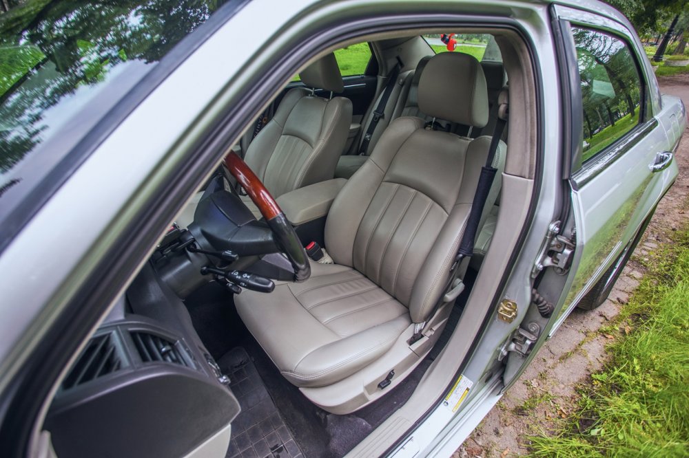 И если в прекрасном техническом состоянии бывшего служебного авто не было ничего удивительного, то салон достоин отдельного упоминания. Бежевые кожаные сиденья бизнес-седана в максимальной комплектации украшали серые велюровые чехлы со вставками из черного кожзама. Состояние «родной» обивки не оставляло сомнений: данный аксессуар достался автомобилю с самого начала.