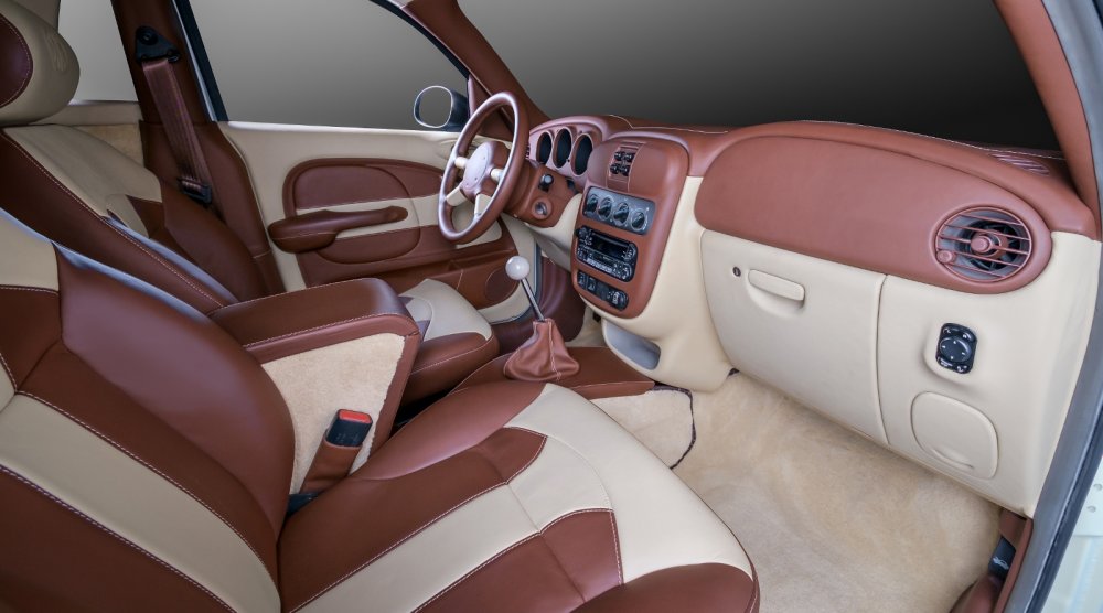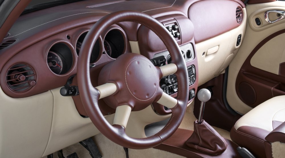 Болгарская мастерская Carbon Motors занялась пошивом обивки для интерьера машины. Владельцу были показаны несколько скетчей, из которых он выбрал наиболее подходящий, и работа закипела. В итоге салон получил двухцветный дизайн в тон экстерьеру. Кожей здесь обтянуто практически все: передняя панель, сиденья, двери, руль, рычаг КПП. Интересно, что в кожу затянули даже передние стойки машины – весьма необычное решение.