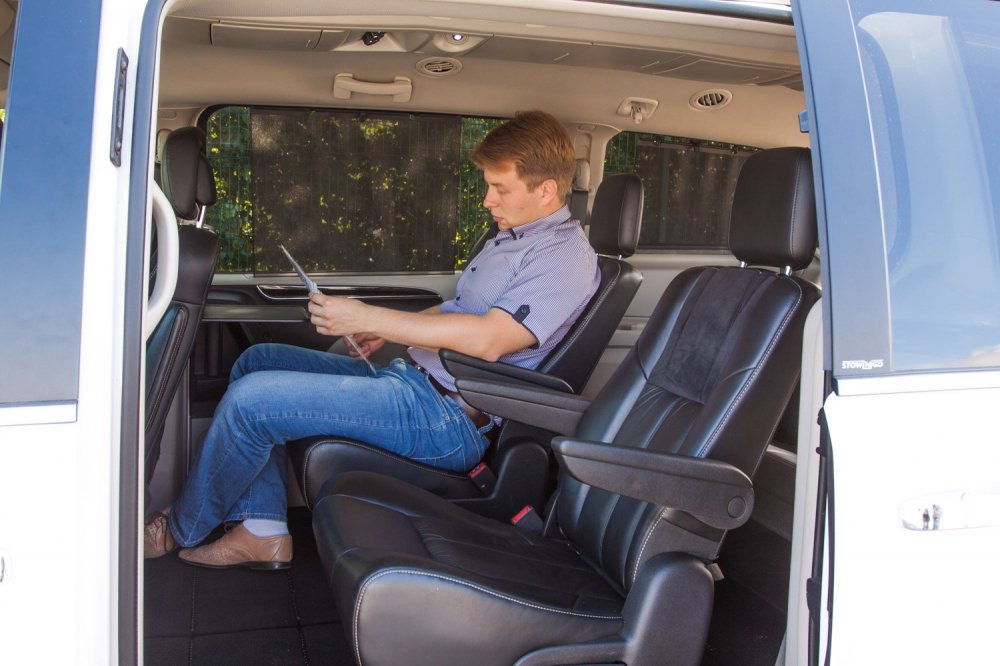 Сидеть на креслах второго ряда ничуть не хуже, чем на передних — комфорт, как в бизнес-классе: есть и подогрев, и регулировки сидений, и шторки на окнах, и отдельная регулировка климат-контроля, и столик, и подлокотники.