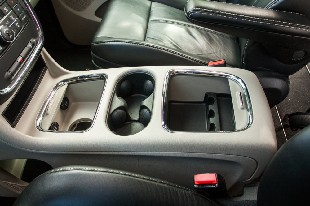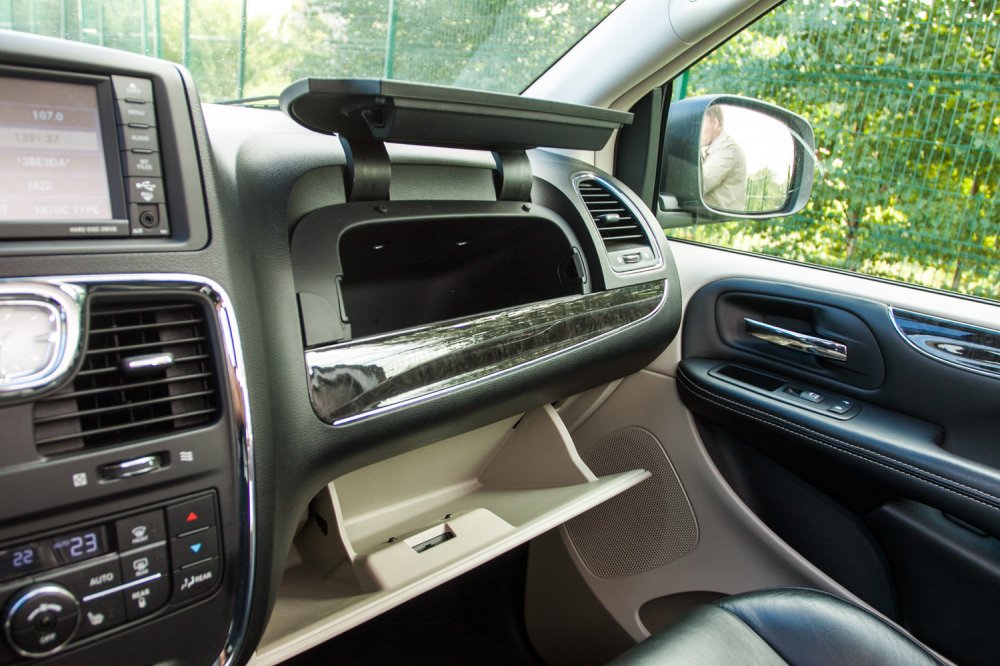 Как в любом минивене, в Гранд Вояджер огромное количество подстаканников, кармашков, ниш, полочек и выдвигающихся ящиков. А на потолке — целая батарея открывающихся отсеков.